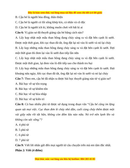 Câu 6 bên cạnh lò sưởi. Được một thời gian, khi cục than đã tắt, ông 0,5 điểm