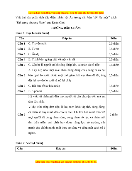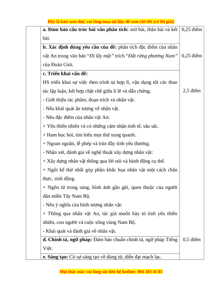 “Đất rừng phương Nam” của Đoàn Giỏi. HƯỚNG DẪN CHẤM