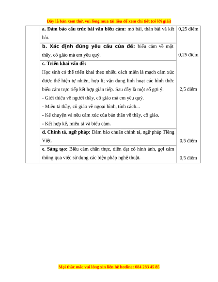 Em hãy viết một bài văn biểu cảm về một thầy, cô giáo mà em yêu quý. HƯỚNG DẪN CHẤM