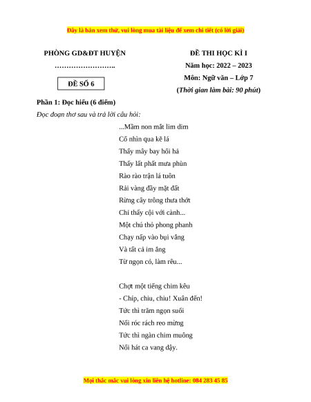 Môn: Ngữ văn – Lớp 7 ĐỀ SỐ 6