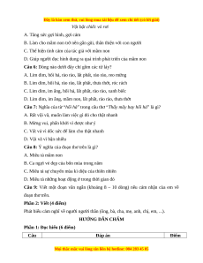 Phần 2: Viết (4 điểm) Câu Đáp án Điểm
