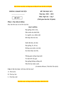 Môn: Ngữ văn – Lớp 7 ĐỀ SỐ 7