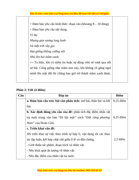 “Đất rừng phương Nam” của Đoàn Giỏi. HƯỚNG DẪN CHẤM