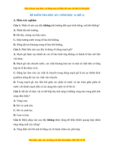 ĐỀ KIỂM TRA HỌC KÌ 1 SINH HỌC 11 (ĐỀ 2)