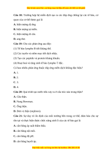 Câu 18: Trường hợp hệ miễn dịch tạo ra các đáp ứng chống lại các tế bào, cơ