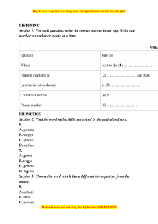 Section 2: Find the word with a different sound in the underlined part. 6. A. assume B. slogan C. atomic D. surface 7. A. genre B. tragic C. genetic D. legible