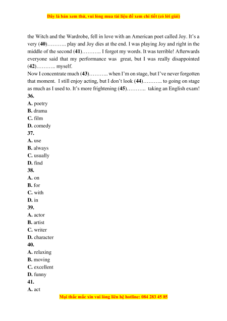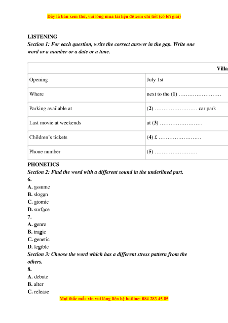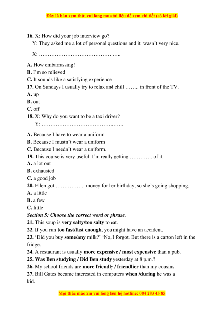 Đây là bản xem thử, vui lòng mua tài liệu để xem chi tiết (có lời giải)