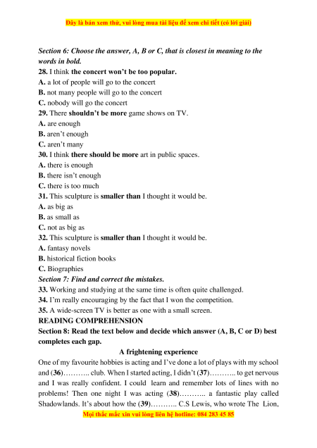 Section 6: Choose the answer, A, B or C, that is closest in meaning to the words in bold.