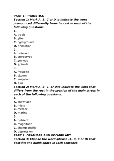 Section 1: Mark A, B, C or D to indicate the word