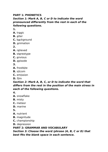 Section 3: Choose the word /phrase (A, B, C or D) that