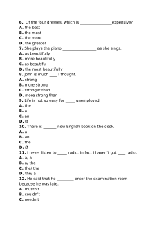 6. Of the four dresses, which is _________________expensive? A. the best B. the most C. the more D. the greater