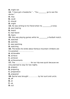 18. Rachel was brought ................. by her aunt and uncle. A. off B. on C. up D. out