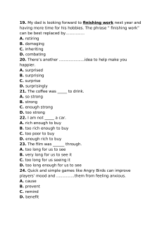 20. There’s another .....................idea to help make you happier. A. surprised B. surprising C. surprise D. surprisingly