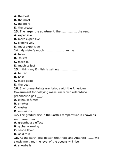 15. I think my English is getting ………………….. A. better B. best C. more good D. the best