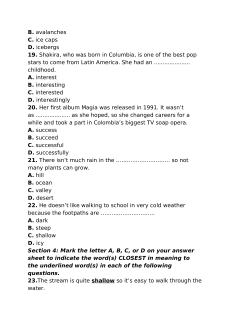 21. There isn’t much rain in the ………………………… so not many plants can grow. A. hill B. ocean C. valley D. desert