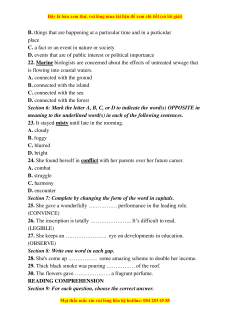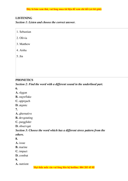 Section 3: Choose the word which has a different stress pattern from the others. 8. A. issue B. marine C. impact D. combat 9. A. nutrient