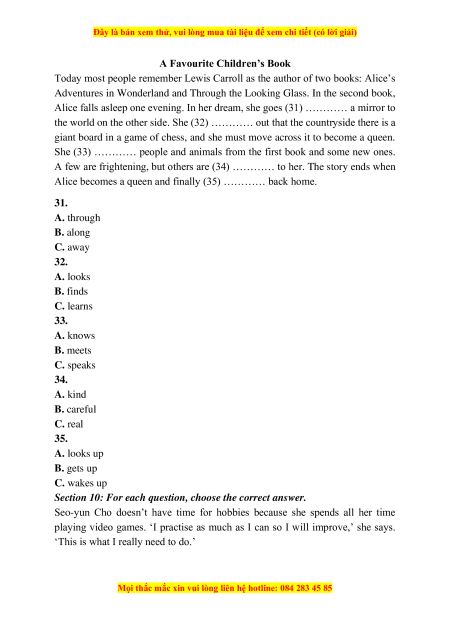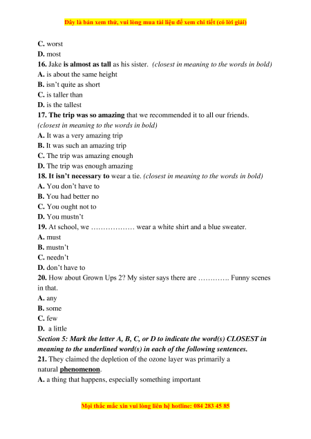 Đây là bản xem thử, vui lòng mua tài liệu để xem chi tiết (có lời giải)