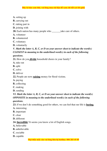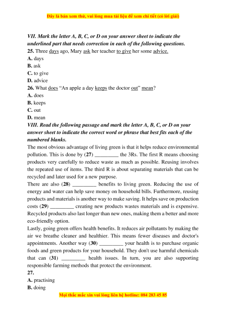 Đây là bản xem thử, vui lòng mua tài liệu để xem chi tiết (có lời giải)