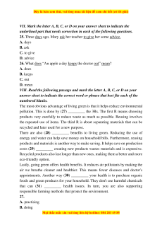 VIII. Read the following passage and mark the letter A, B, C, or D on your
