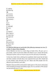(Nelson Mandela trở thành Tổng thống Nam Phi năm 1994.)