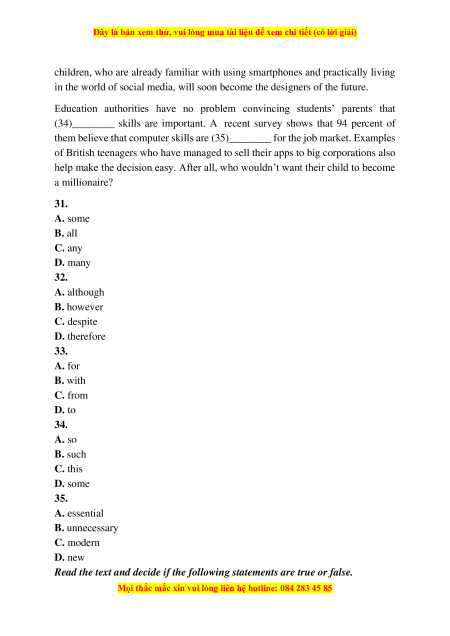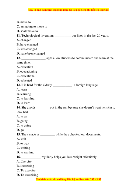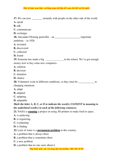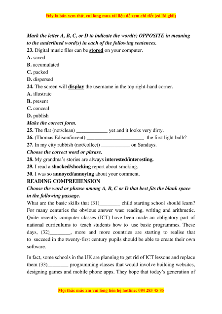 Đây là bản xem thử, vui lòng mua tài liệu để xem chi tiết (có lời giải)