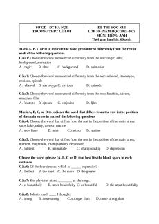 Đề thi cuối kì 1 Tiếng Anh 10 Global success trường THPT Lê Lợi