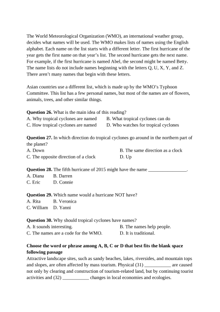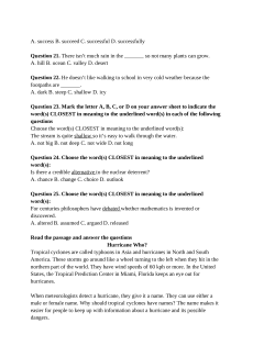 Question 30. Why should tropical cyclones have names? A. It sounds interesting. B. The names help people.