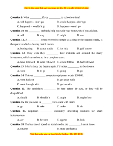 Question 14. Thieves _________ computer equipment worth $30 000. A. went back on B. got away with C. went through with D. got on with