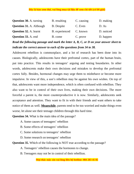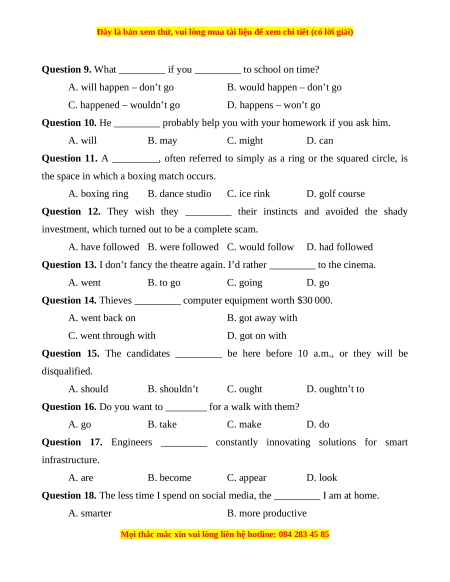 Đây là bản xem thử, vui lòng mua tài liệu để xem chi tiết (có lời giải)