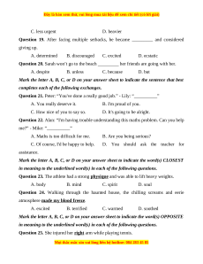 Question 19. After facing multiple setbacks, he became _________ and considered giving up. A. determined B. discouraged C. excited D. ecstatic