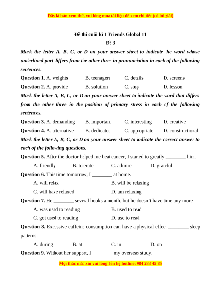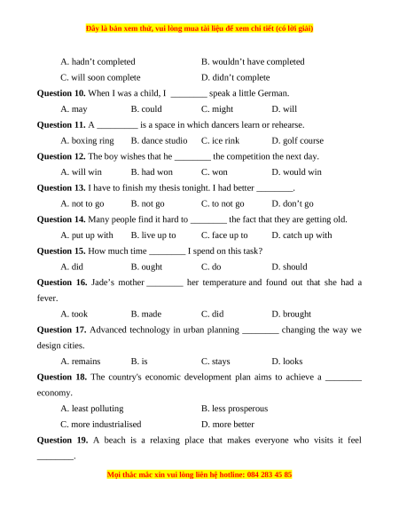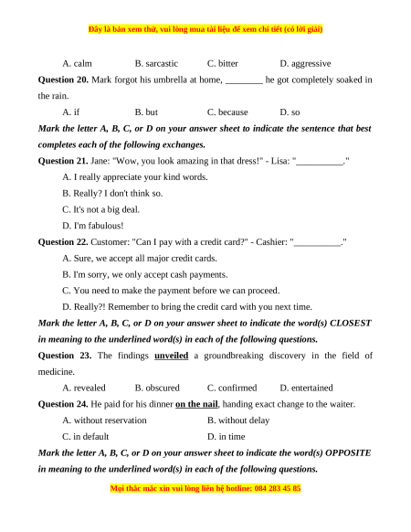 Đây là bản xem thử, vui lòng mua tài liệu để xem chi tiết (có lời giải)