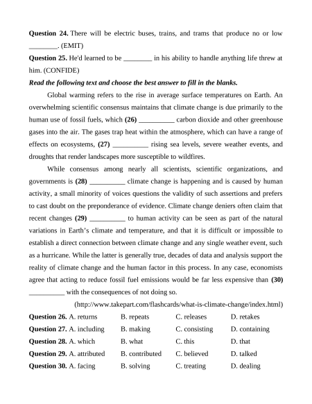 human use of fossil fuels, which (26) __________ carbon dioxide and other greenhouse