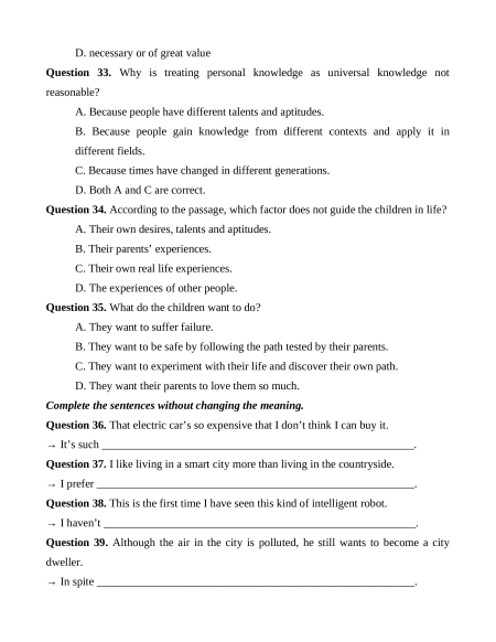 Question 36. That electric car’s so expensive that I don’t think I can buy it.