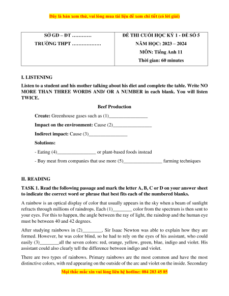 Đề thi cuối kì 1 Tiếng Anh 11 Global success (Đề 5 kèm file nghe)