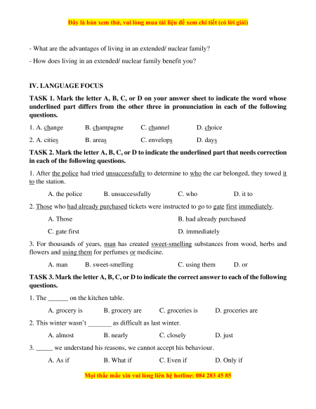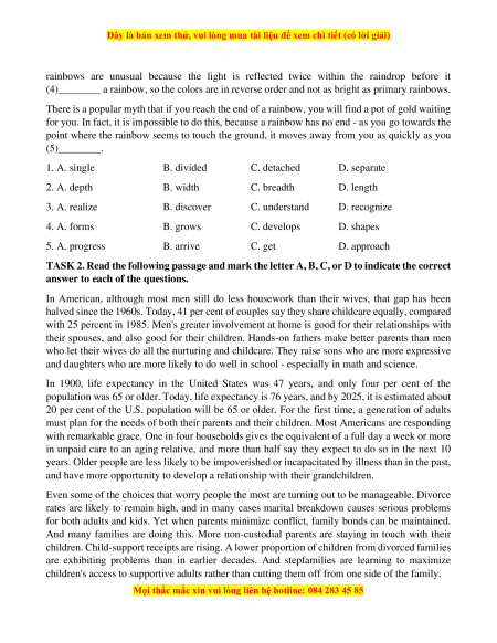 TASK 1. Read the following passage and mark the letter A, B, C or D on your answer sheet