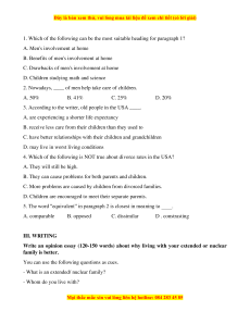 1. Which of the following can be the most suitable heading for paragraph 1? A. Men's involvement at home