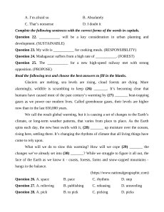 alarmingly, wildlife is scrambling to keep (26) _______. It’s becoming clear that