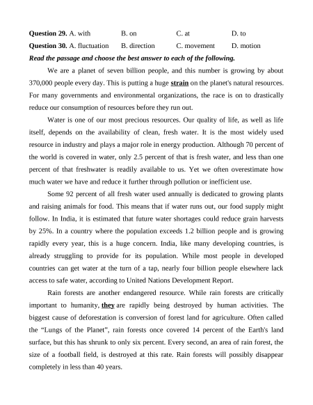 Question 30. A. fluctuation B. direction C. movement D. motion