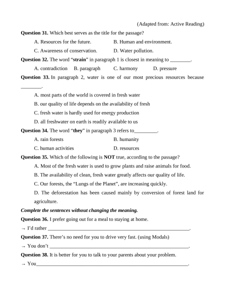 Question 33. In paragraph 2, water is one of our most precious resources because