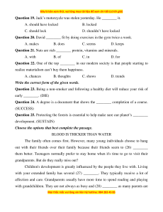 Choose the options that best complete the passage. BLOOD IS THICKER THAN WATER