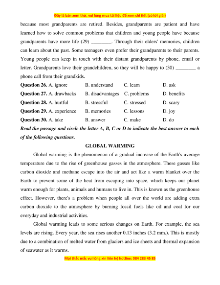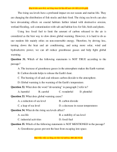 Thông tin: Global warming leads to some serious changes on Earth. For example, the