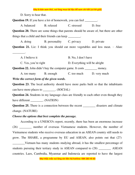 Đề thi được cập nhật liên tục trong gói này từ nay đến hết tháng 3/2024. Chúng tôi đảm bảo đủ số lượng đề đã cam kết hoặc có thể nhiều hơn, tất cả có BẢN WORD, LỜI GIẢI CHI TIẾT và tải về dễ dàng.