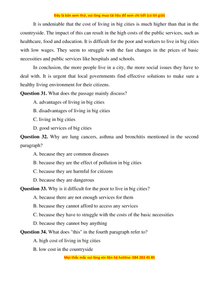 Thông tin: It is undeniable that the cost of living in big cities is much higher than that in