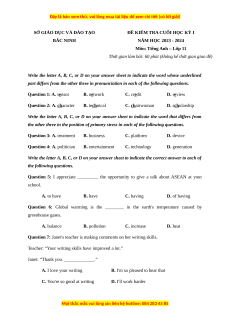 Đề thi cuối kì 1 Tiếng Anh 11 Sở GD&ĐT Bắc Ninh