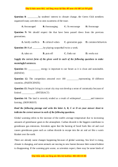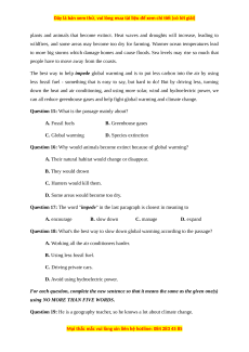 Question 15: What is the passage mainly about? A. Fossil fuels B. Greenhouse gases C. Global warming D. Species extinction