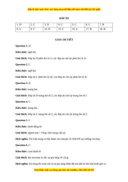 Chúng tôi đảm bảo đủ số lượng đề đã cam kết hoặc có thể nhiều hơn, tất cả có BẢN WORD, LỜI GIẢI CHI TIẾT và tải về dễ dàng.