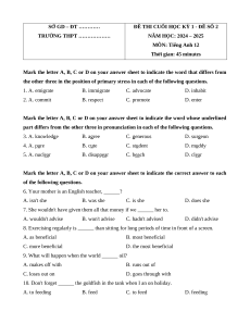 NĂM HỌC: 2024 – 2025 MÔN: Tiếng Anh 12 Thời gian: 45 minutes