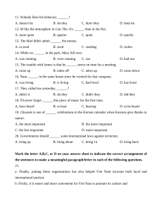 12. M like the atmosphere in Can Tho. It's ______ than in Ha Noi. A. more quiet B. quieter C. quiet D. quietly