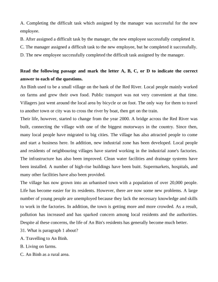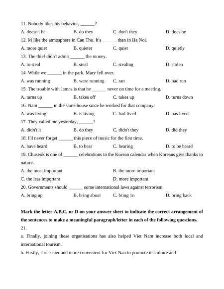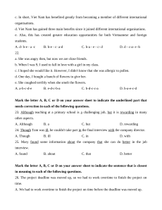 e. Also, this has created greater education opportunities for both Vietnamese and foreign students. A. d- b-e - a -c B. b-e - c- a-d C. b-a - e - c- d D. d - c-a- e -b 22.
