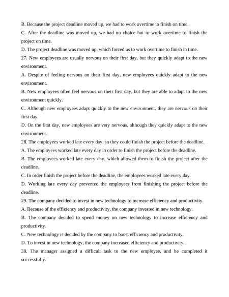 28. The employees worked late every day, so they could finish the project before the deadline.